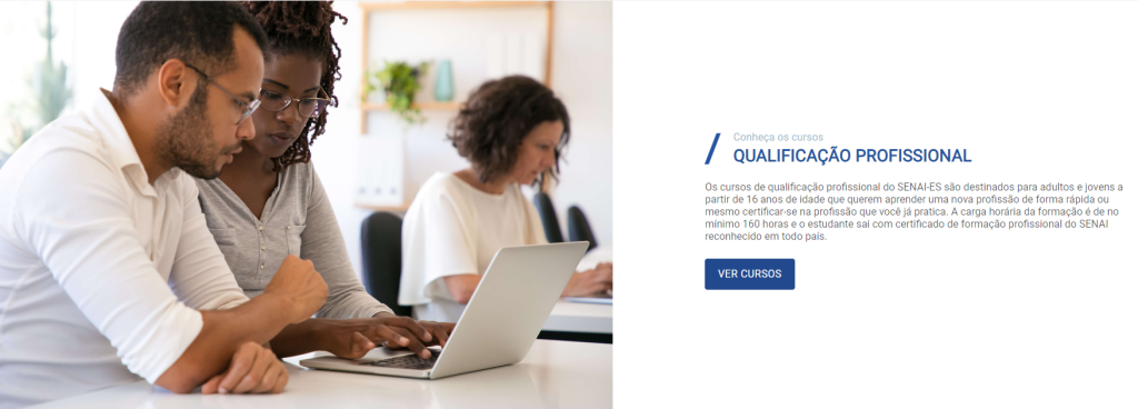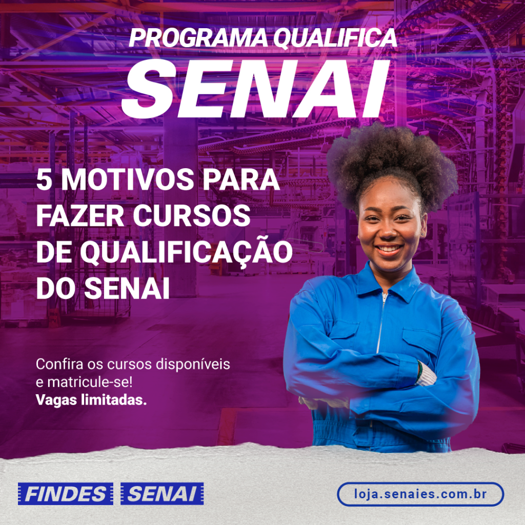 Participar do Programa é um investimento no seu futuro profissional. Aproveite essa oportunidade única e faça parte do Qualifica Senai para alcançar o sucesso que você merece. As vagas são destinadas às pessoas de baixa renda e serão ofertadas nas unidades do Senai ES: Aracruz, Cachoeiro de Itapemirim, Colatina, Linhares, São Mateus, Serra, Vila Velha e Vitória.