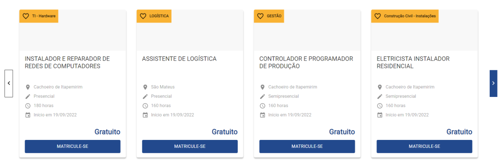 2º Passo: Para conferir os cursos ofertados, clique na seta no lado direito ou esquerdo. E pronto, matricule-se.
