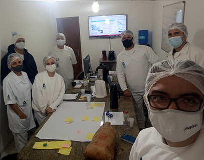 Equipe do projeto de inovação da Atum do Brasil em reunião com a consultora do IST, Patrícia Zucatelli Zonta
