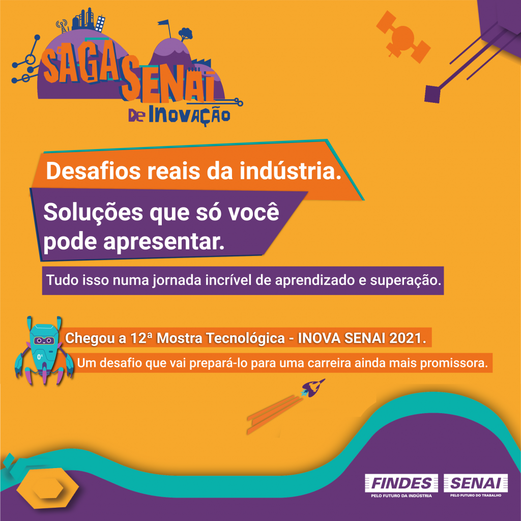O Inova Senai é uma das atividades da Saga Senai de Inovação, que também conta com o Grand Prix Senai de Inovação e o Desafio Senai de Projetos Integradores.