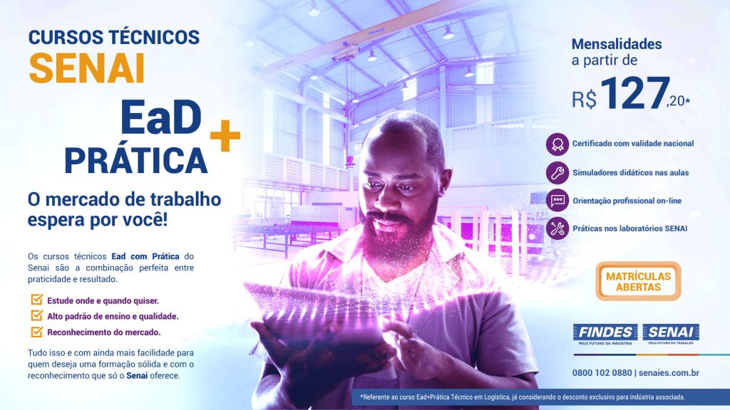 Para quem está em busca da rápida inserção no mercado de trabalho e uma capacitação reconhecida pelo mercado nacional, o Senai ES está com 1.630 vagas abertas em cursos técnicos para o primeiro semestre de 2021. E o candidato ainda pode escolher qual modalidade encaixa na sua rotina de vida: presencial ou Ensino à Distância (EaD) com aulas práticas.
