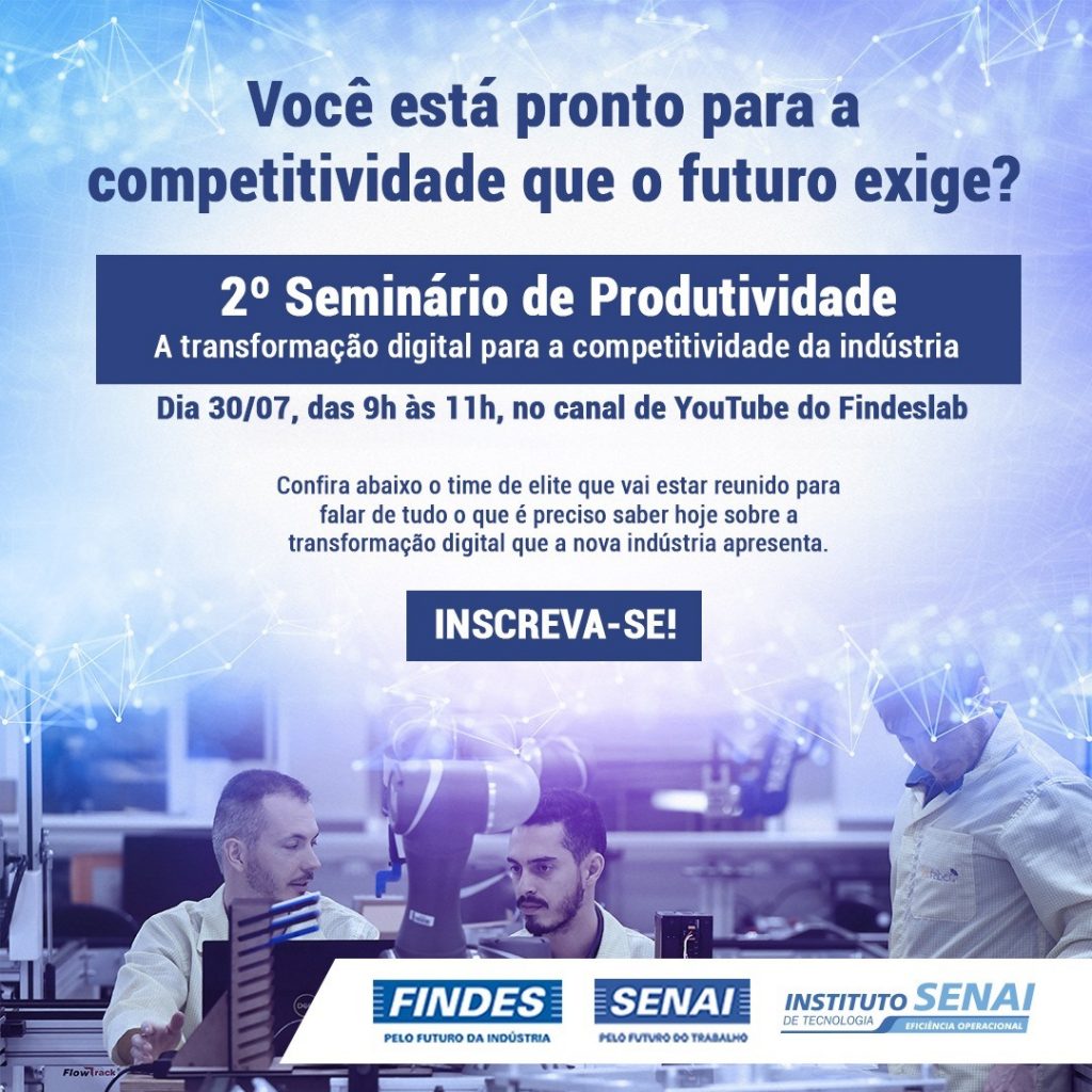 O evento marca a inauguração do novo espaço do Instituto Senai de Tecnologia (IST) e será totalmente digital, com transmissão ao vivo pelo canal do Youtube do Findeslab. Para se inscrever é só clicar aqui.