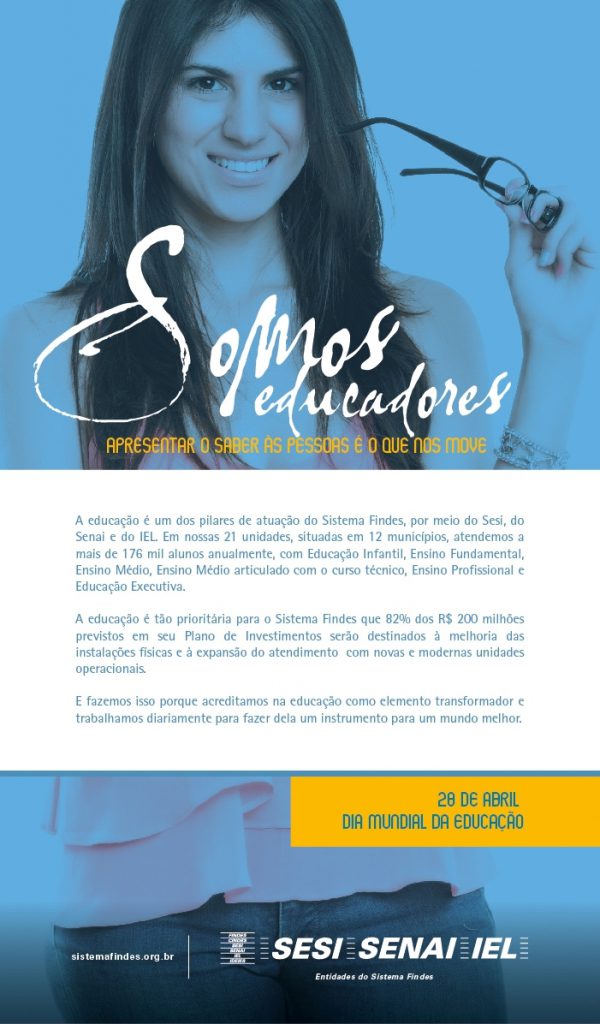 O Sistema Findes promove, no dia 20 de fevereiro, a 10ª edição da Convenção Sesi-Senai-IEL. O tema de 2015 é: “Educação Que Transforma”. O evento será realizado no Centro de Convenções de Vitória, a partir das 7h30, e deve contar com a presença de 1 mil educadores e profissionais do Sistema Findes de todo o Estado.