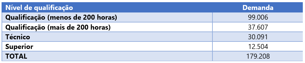 Projeção aponta que, desse total, 140 mil já têm uma formação ou estão inseridos no mercado de trabalho, mas devem se atualizar. Outros 39 mil precisarão de formação inicial