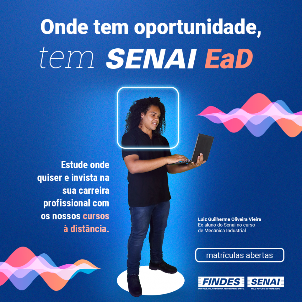 Nova oportunidade para começar um curso técnico do Senai ES. São vagas para cursos no formato EAD em oito unidades do estado. Aproveite e matricule-se!