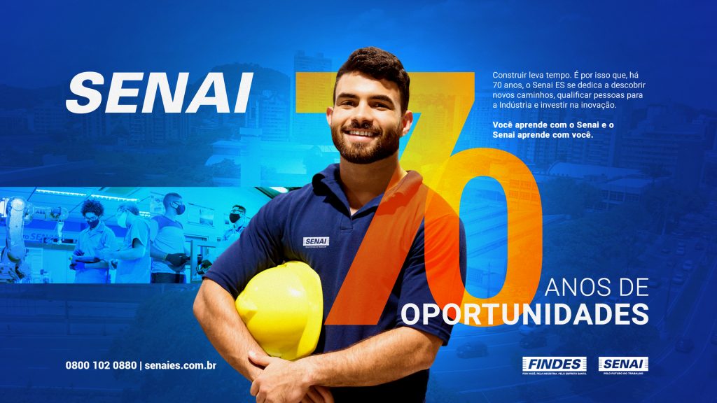 Sete décadas de oportunidades. Enquanto o Senai ES forma excelentes profissionais para a indústria capixaba, também descobrimos novos caminhos e investimos na inovação.